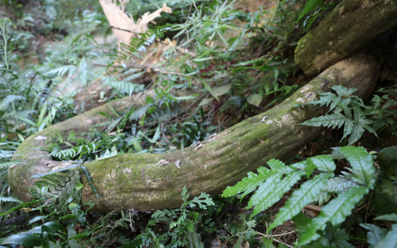 一片深山老林中,若没有眼前这些无序的秋千般的古藤相伴,那绝不是健康完整的生态林,甚至有可能是人工经济林。它们,其中一部分被选择性的保护下来,还有大量的顽强的竞争者被选择性淘汰,这样的经济林,它天生有基因缺陷。而一个不受破坏的原始生态林中,往往能代表这片绿色的名片恰恰不是那些高颜值的高大林木,反而是长相平常的桫椤,甚至是这些相貌古怪的藤萝,它们身上有着更远古的基因,让我们看见亘古以前的样子。