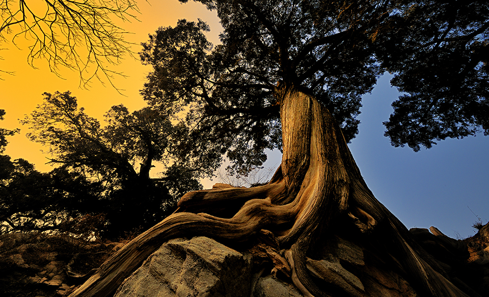 或许在它还是一棵小树的时候,它的周遭还有很多参天大树,它们甚至比眼前这棵青冈王还要高大挺拔,但如今都见不到它们的身影,只有它孤独地幸活下来,它活出了一片森林的断代史。