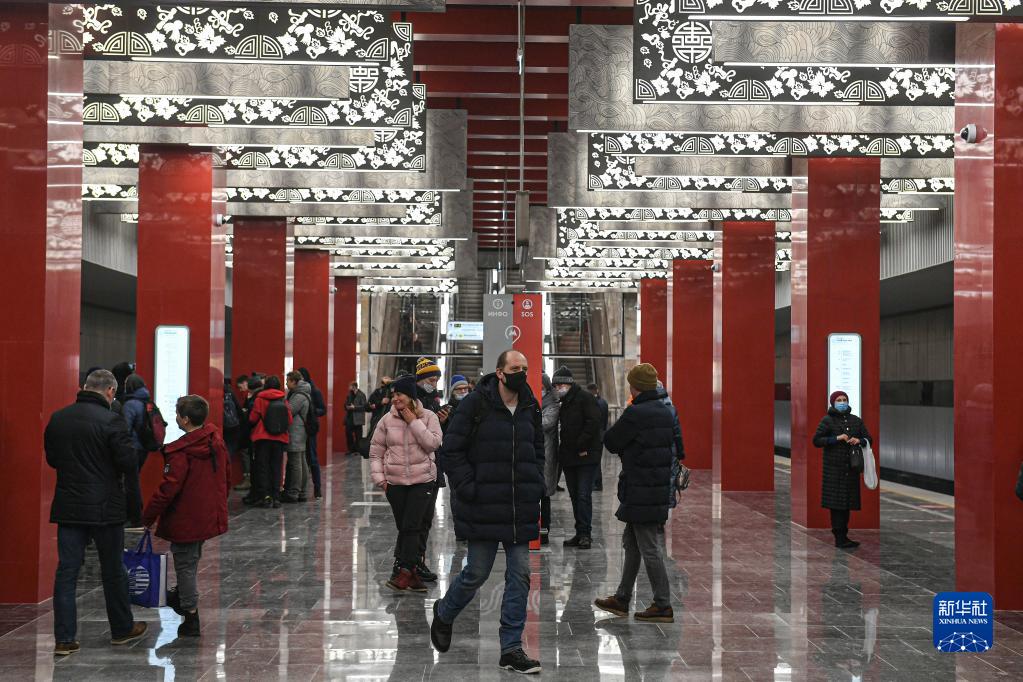 2021年12月7日,在俄羅斯首都莫斯科,乘客走在莫斯科地鐵第三換乘環(huán)線西南段米丘林大街站內(nèi)。中企在俄羅斯承建的首個地鐵項目——莫斯科地鐵第三換乘環(huán)線西南段項目當(dāng)日開通。新華社發(fā)(葉甫蓋尼·西尼岑 攝)