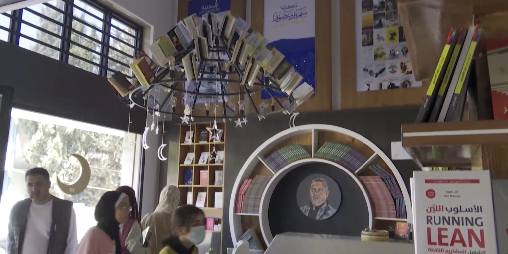 2022年2月重建開業的薩米爾·曼蘇爾書店。(視頻截圖)