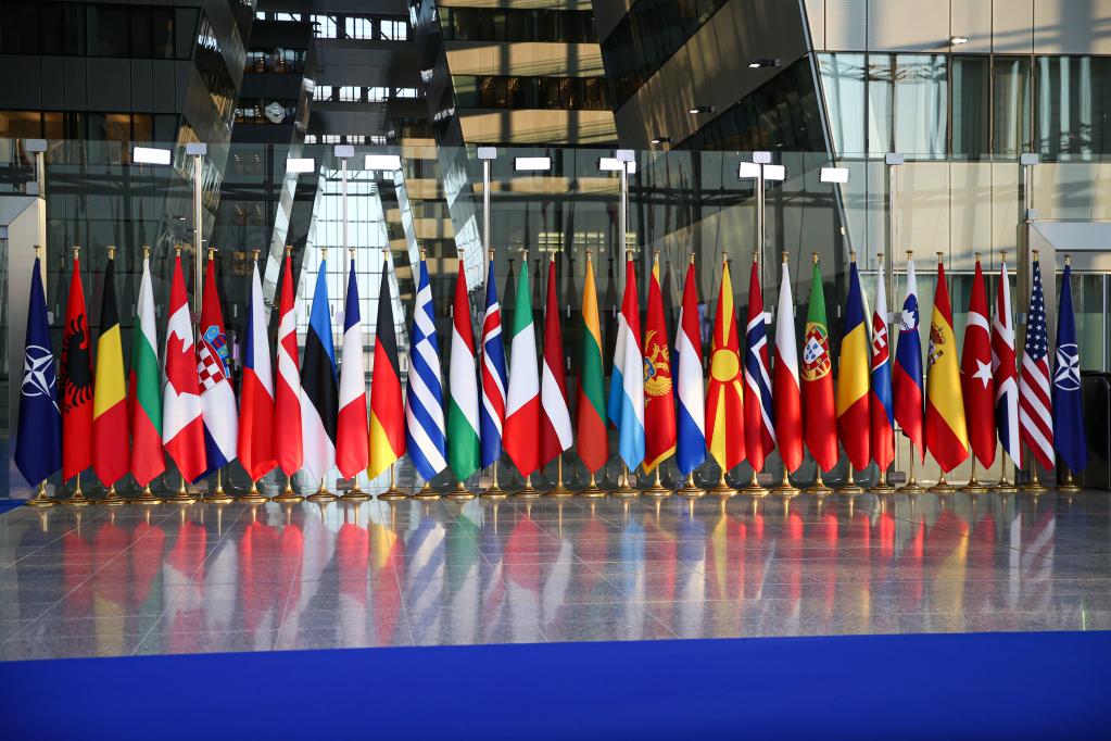 這是2022年3月24日在比利時布魯塞爾的北約總部拍攝的旗幟。新華社記者鄭煥松攝