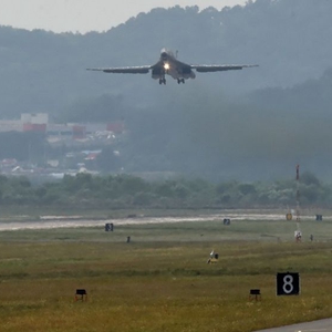 2016年9月21日,美軍B-1B轟炸機(jī)準(zhǔn)備在美軍駐韓國烏山空軍基地著陸。新華社/紐西斯通訊社