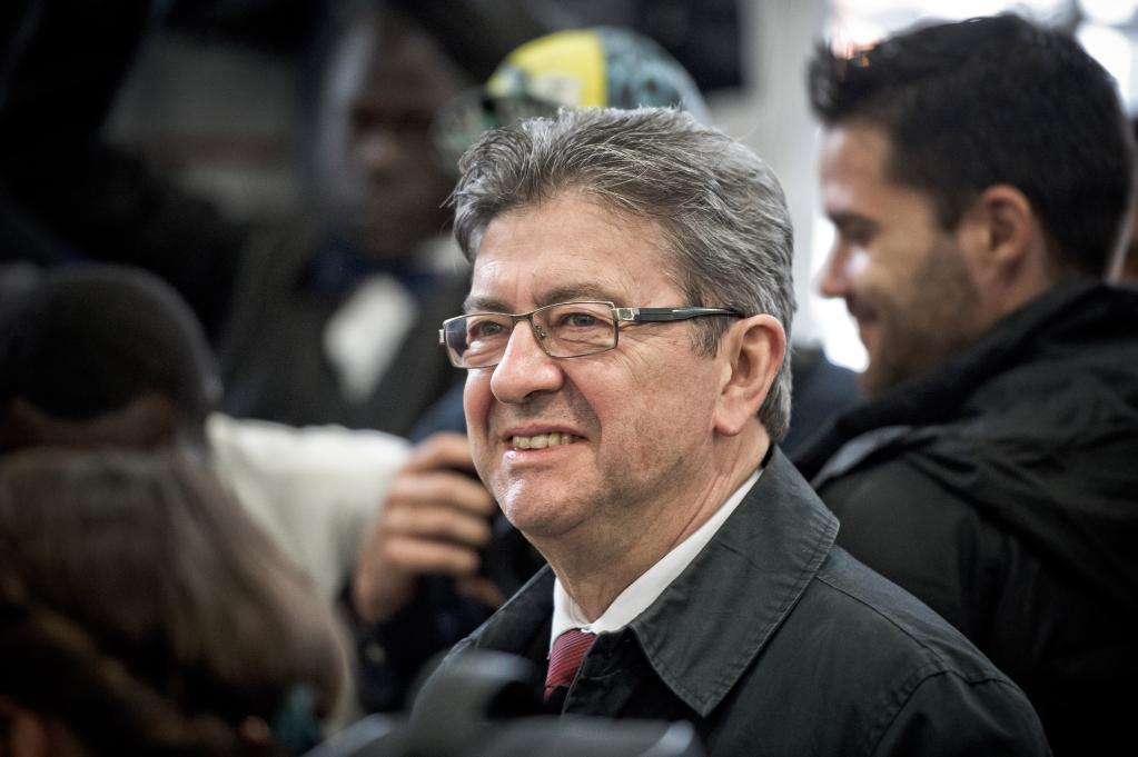 4月23日,在法國巴黎一處投票站,極左翼組織“不屈法國”候選人讓-呂克·梅朗雄參加法國總統選舉投票。(新華社發,于貝尓·勒沙攝)