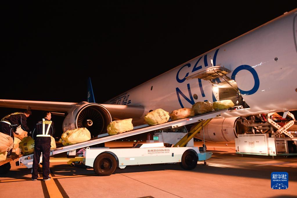 2019年10月30日凌晨,浙江杭州飛往俄羅斯首都莫斯科的首條直達電商貨運航線“菜鳥號”從蕭山國際機場首航。 新華社記者 黃宗治 攝