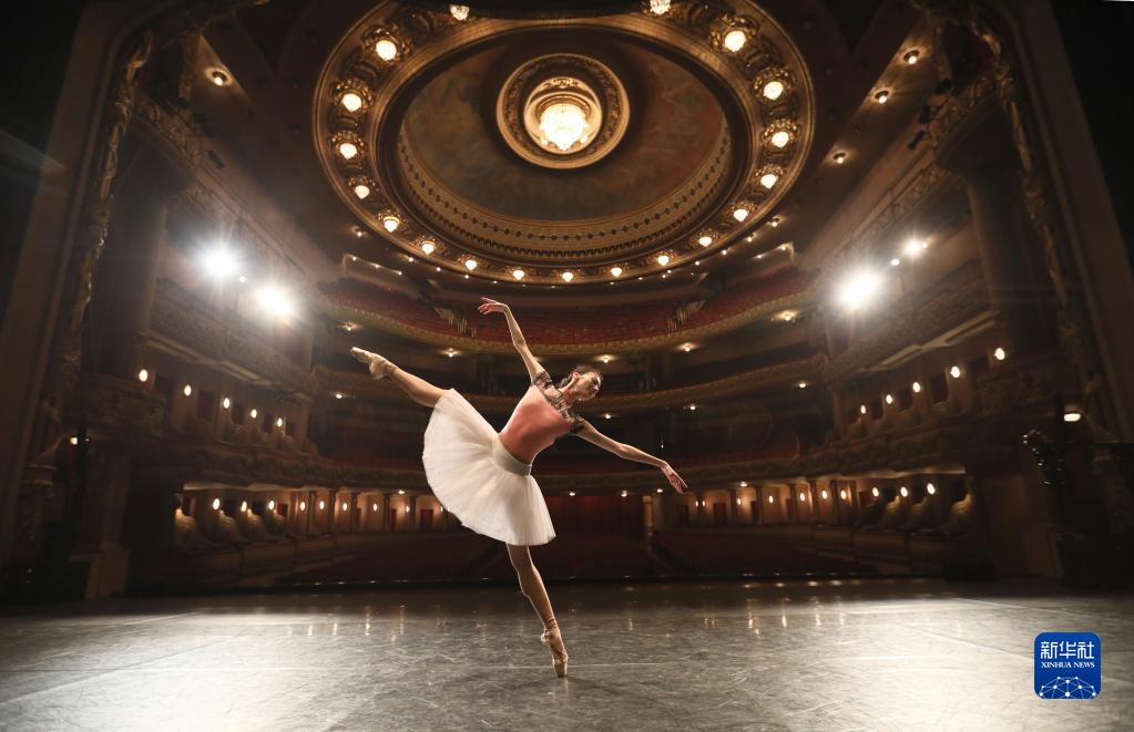 2019年5月24日,在巴西里約熱內盧,中央芭蕾舞團演員方夢穎在里約熱內盧市政劇院排練。中央芭蕾舞團攜《大紅燈籠高高掛》來到巴西,為當地民眾獻上帶有濃郁中國元素的精彩表演。 新華社發(劉宇攝)