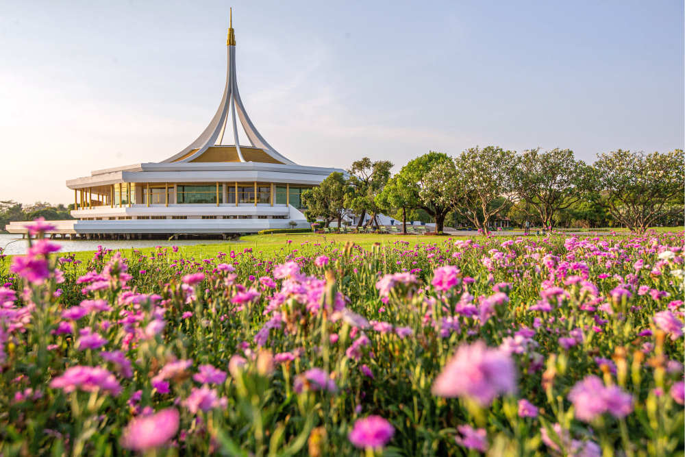 ↑這是2022年3月15日在泰國曼谷拍攝的九世王御園。
