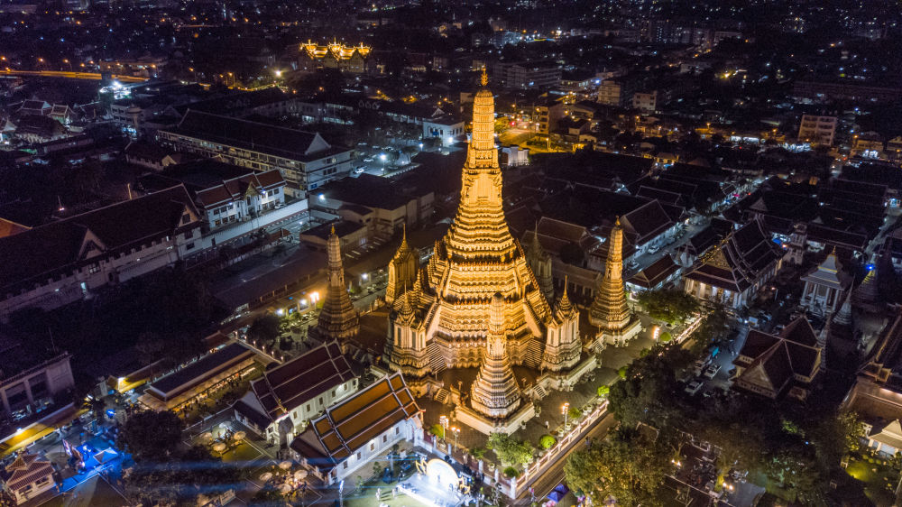 ↑這是2022年11月7日在泰國曼谷拍攝的鄭王廟(無人機照片)。