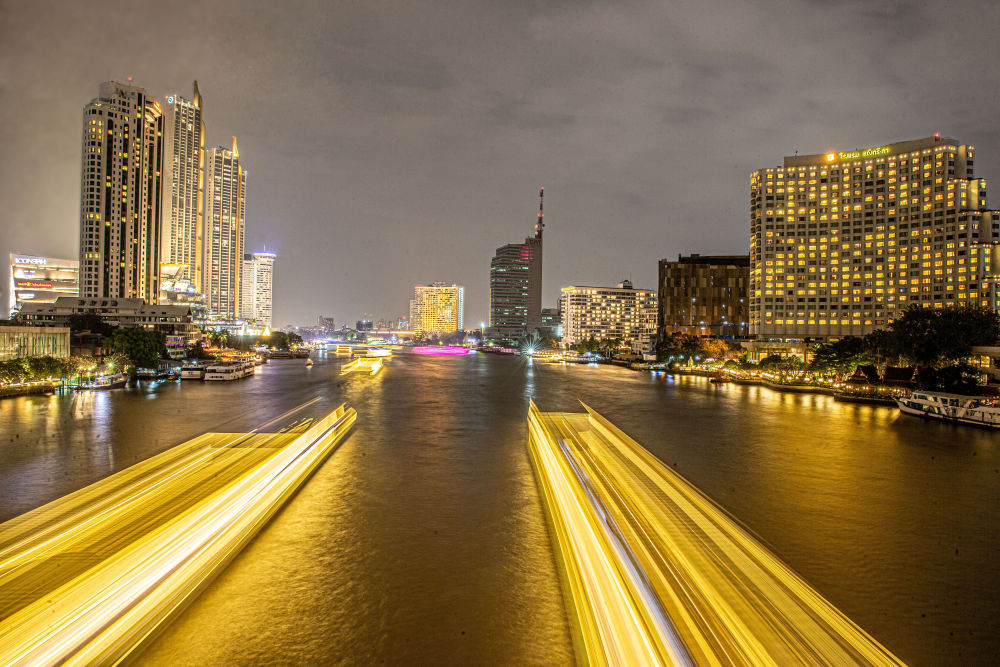 ↑這是2022年11月6日在泰國曼谷拍攝的湄南河夜景。