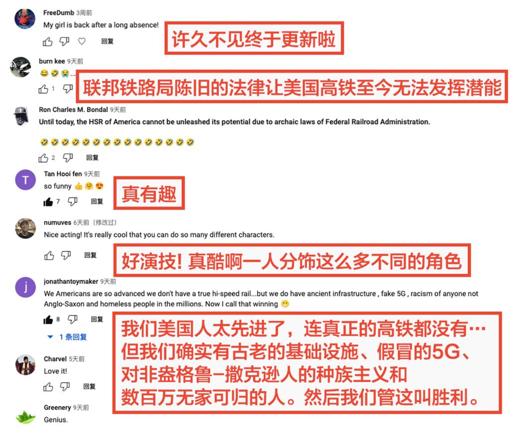 現實生活中,有很多外媒面對中國的發展進步,選擇裝聾作啞、吹毛求疵,甚至指鹿為馬、混淆是非。“國社小姐姐”通過這部一人分飾多角的諷刺劇,對這些反華聲音進行“嚴肅的戲謔”,“一本正經的調侃”,可謂一針見血。