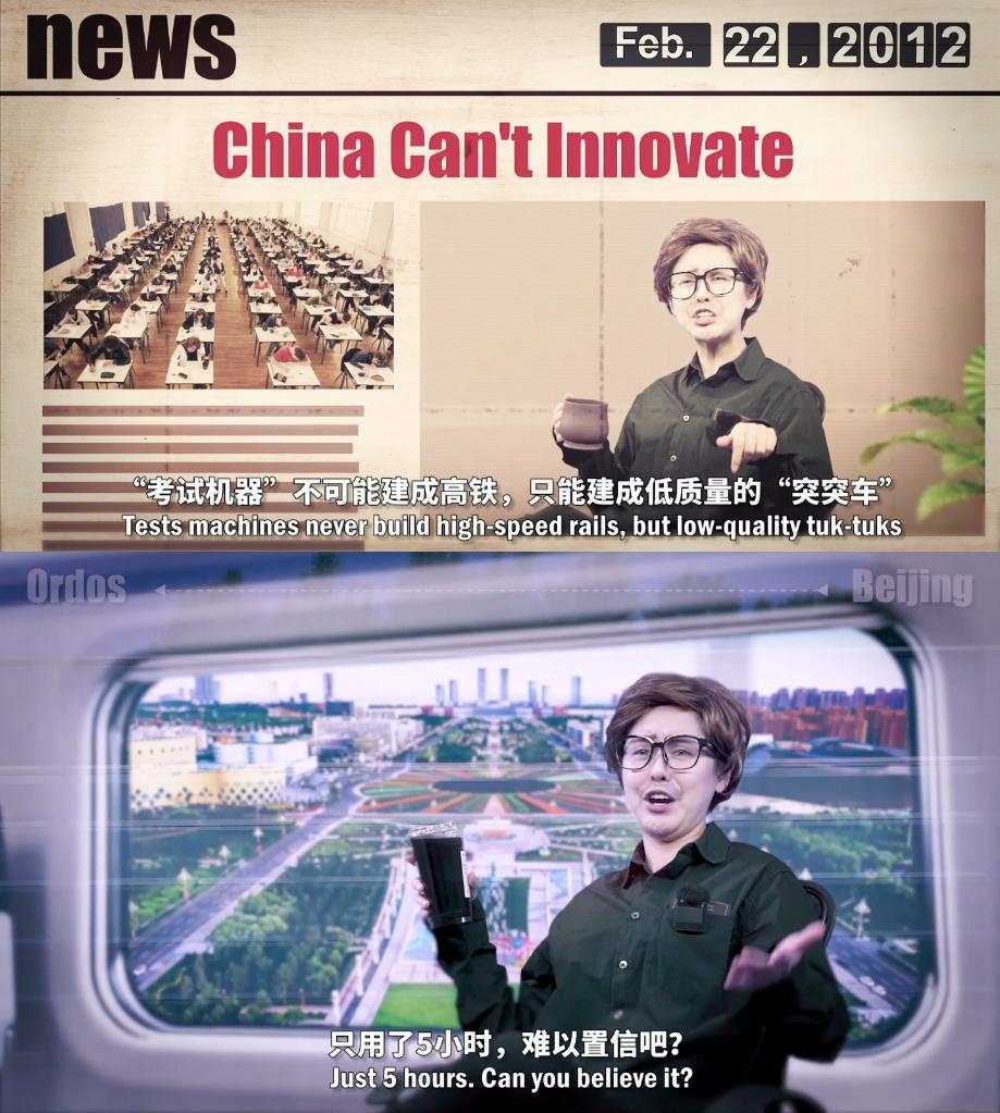 劇中,某外媒駐華首席記者鮑勃搭乘高鐵去了內蒙古自治區鄂爾多斯市,感嘆中國高鐵速度之快、票價之惠、沿途風景之美。而十年前的他還聲稱,中國高鐵是“低質量的突突車”和“破銅爛鐵”……