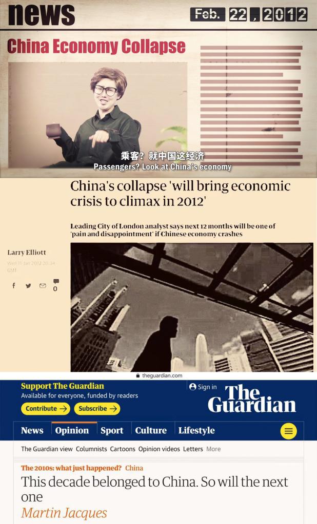 短片由新華社國際部和中國搜索合作推出。策劃團隊通過大數據技術,對十年來的外媒涉華報道進行分析,提取了經濟、科技、生態等領域的不實言論,在此基礎上創作了該短片,將“中國崩潰論”背后的荒謬展露無遺。作品在海外社交媒體平臺播發后,讓不少人眼前一亮。