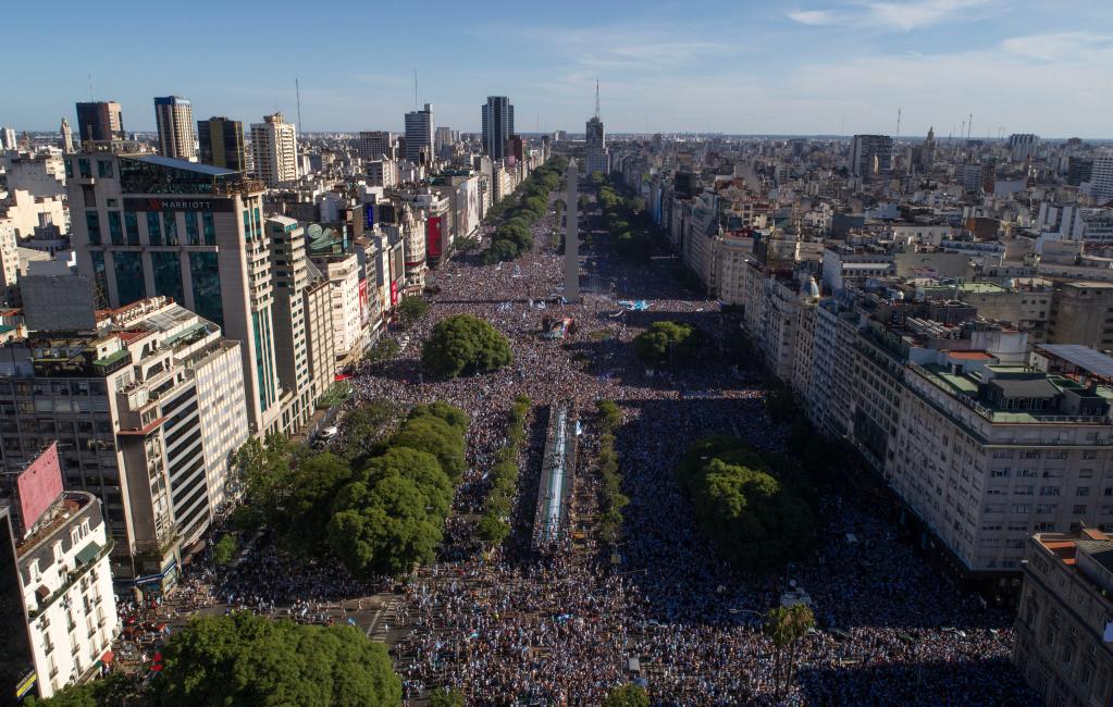 這是卡塔爾世界杯決賽結束后的布宜諾斯艾利斯。在這場比賽中,阿根廷隊擊敗衛(wèi)冕冠軍法國隊,第三次奪得世界杯冠軍。
