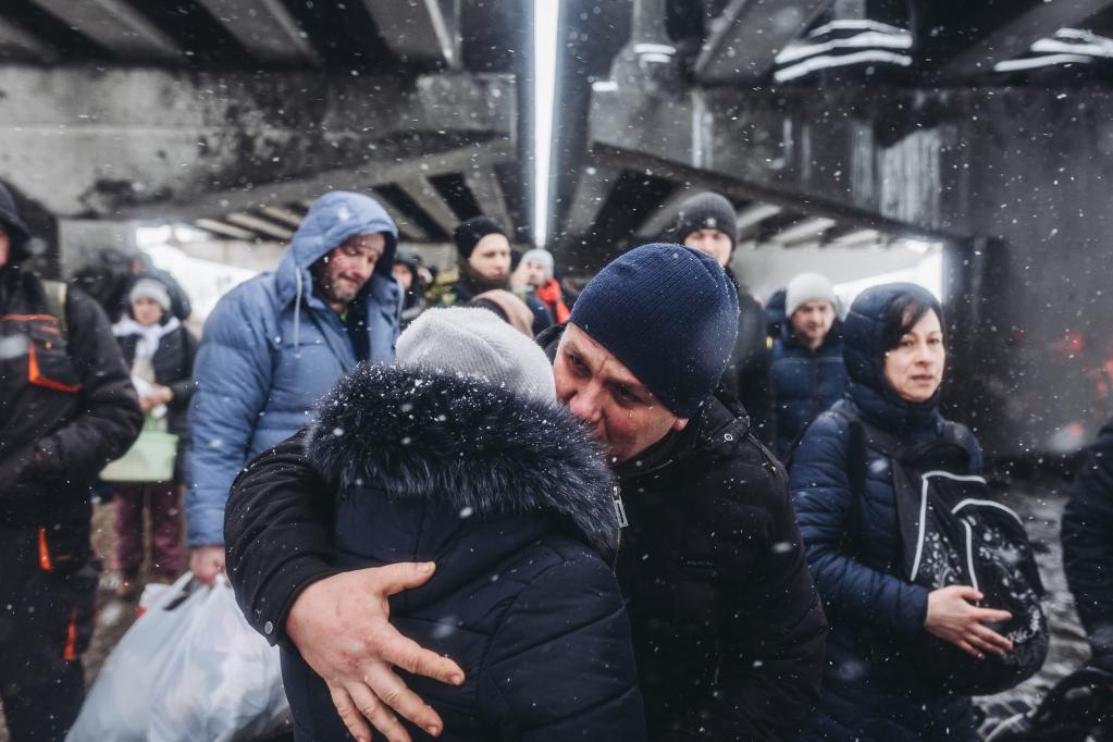 這是2022年3月8日,一對情侶在烏克蘭伊爾平告別。新華社發(fā)(迭戈·埃雷拉攝)