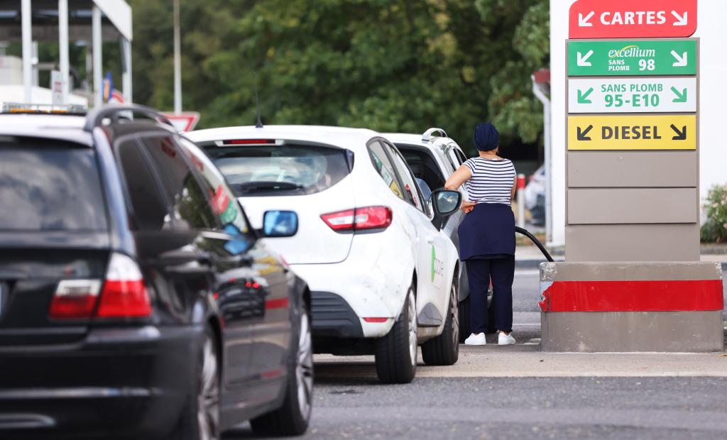 2022年8月18日, 人們在法國巴黎郊區(qū)的一處加油站加油。(新華社記者 高靜 攝)