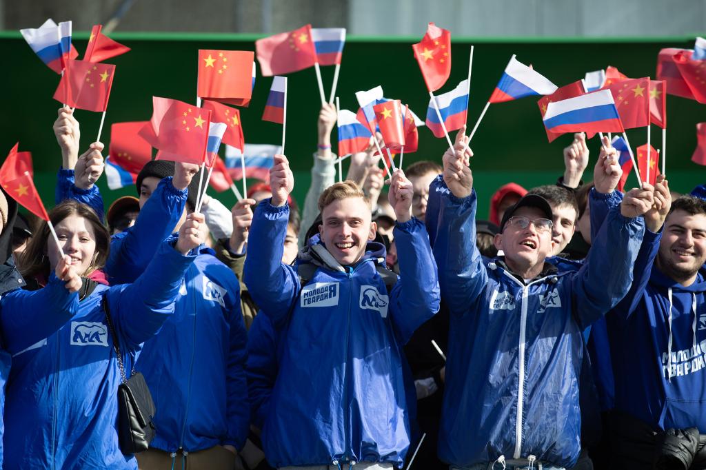 在中國領導人下榻酒店附近,眾多俄羅斯青年和中國留學生、中企員工、華僑華人熱情揮舞著兩國國旗。“熱烈歡迎”的口號,同俄語的歡呼聲,交織在一起。