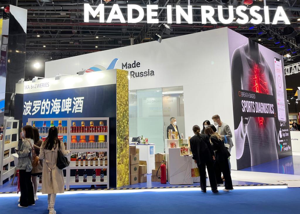 2022年11月6日在第五屆進博會上拍攝的俄羅斯產(chǎn)品展區(qū)。新華社記者鄭冬睿攝