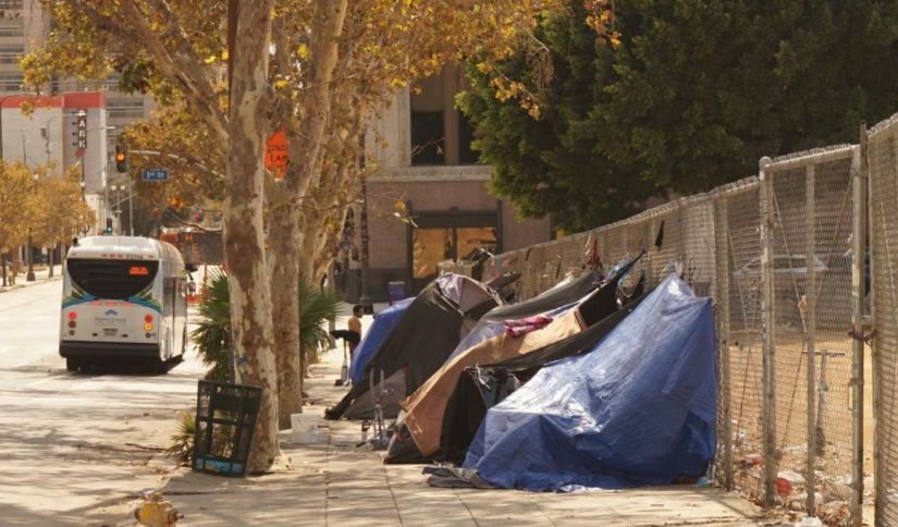 2022年9月8日,在美國加利福尼亞州洛杉磯市區,街頭可見多個無家可歸者的帳篷。新華社發(曾慧攝)