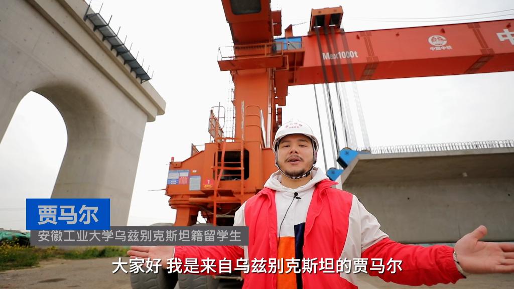 一座大橋是如何建成的?帶著這個問題,游覽過中國多地的烏茲別克斯坦留學生賈馬爾來到了馬鞍山長江公鐵大橋的建設現場。