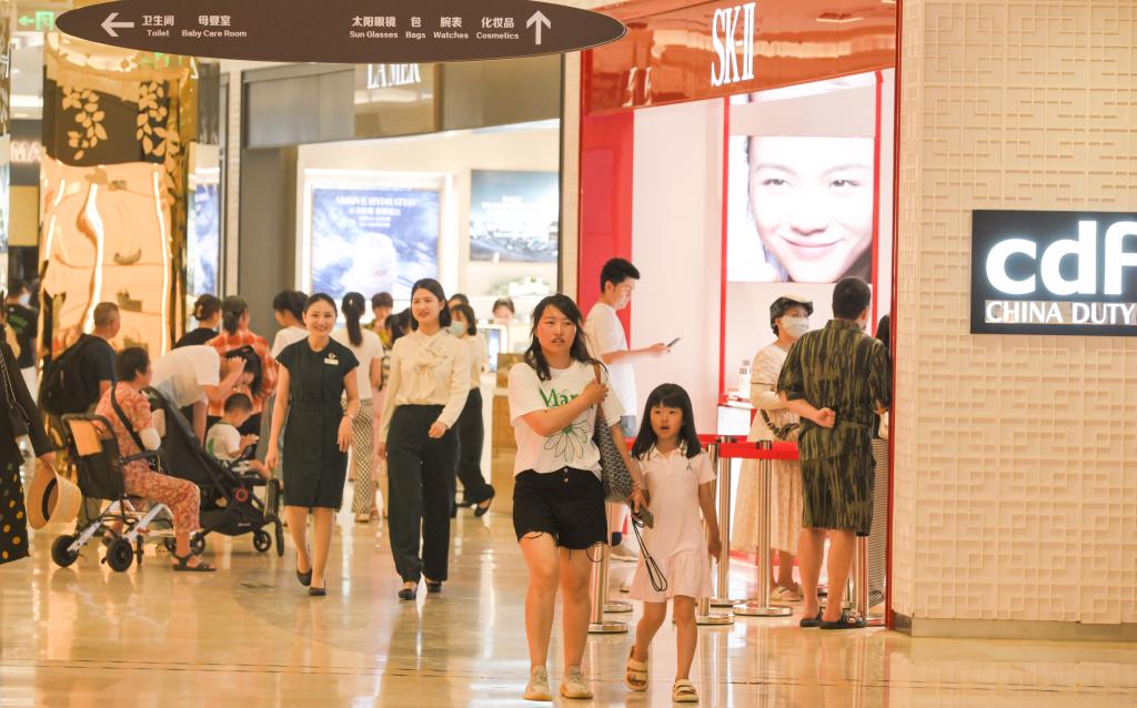 7月12日,游客在中免集團海口日月廣場免稅店選購商品。(新華社記者楊冠宇攝)