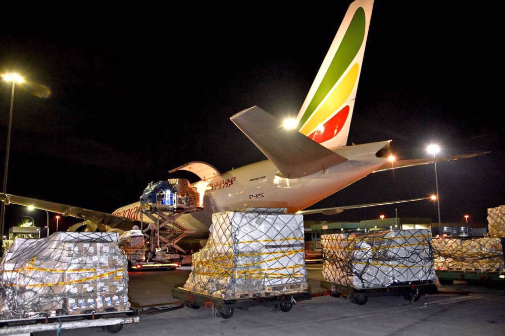 中國援助的抗疫物資抵達南非約翰內斯堡(2020年4月14日攝)。