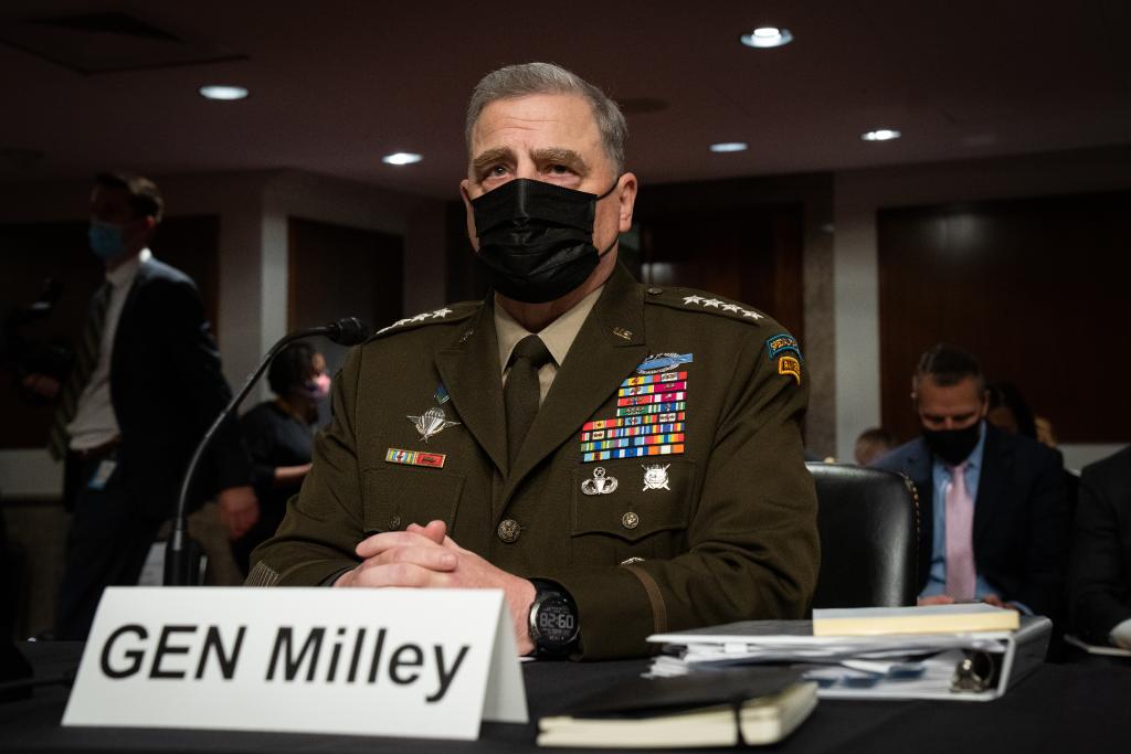 圖為2021年9月28日拍攝的美軍現任參謀長聯席會議主席馬克·米利出席國會聽證會的資料照片。新華社發(Pool圖片/薩拉貝斯·梅尼攝)