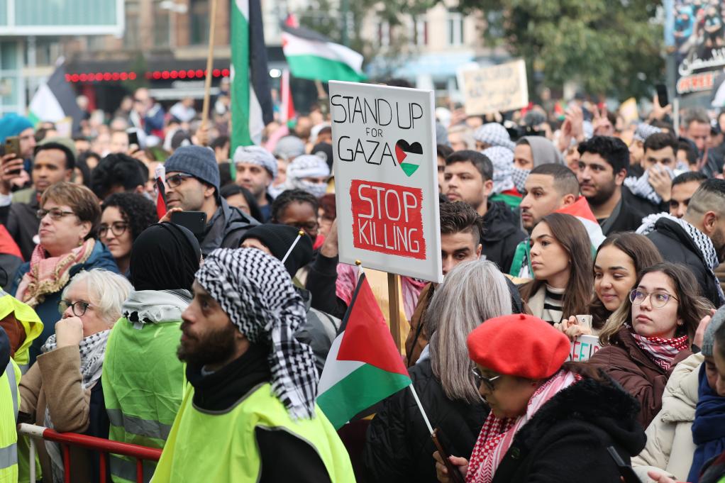 11月11日,眾多巴勒斯坦支持者在比利時布魯塞爾集會,呼吁盡快實現(xiàn)加沙停火。新華社記者 趙丁喆 攝
