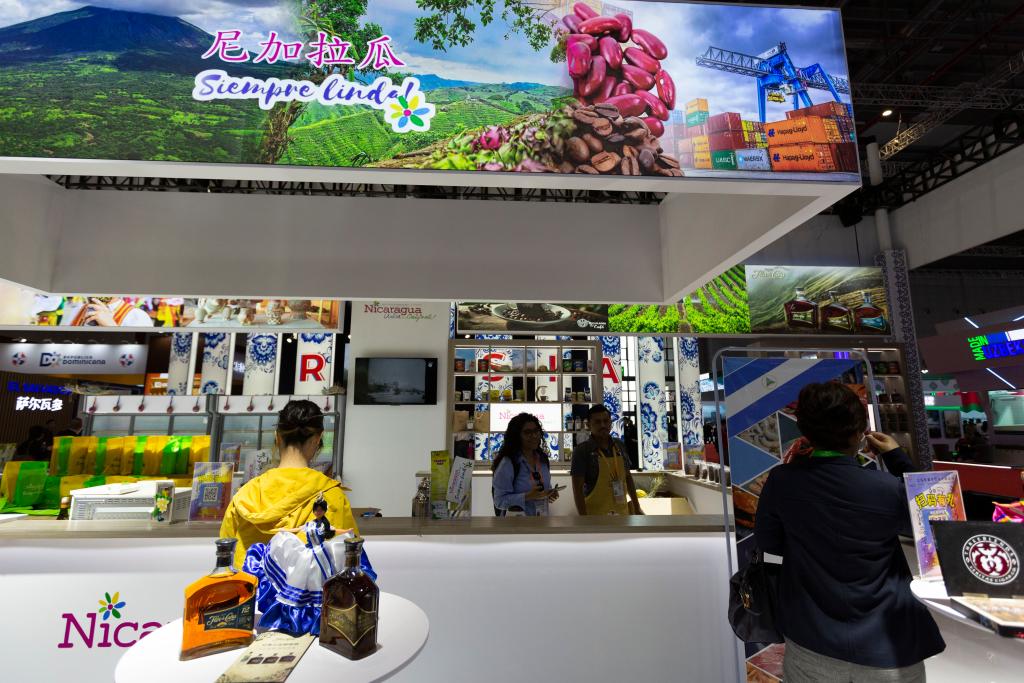 圖為11月6日在第六屆進博會國家展拍攝的尼加拉瓜展臺。新華社記者 高巍 攝