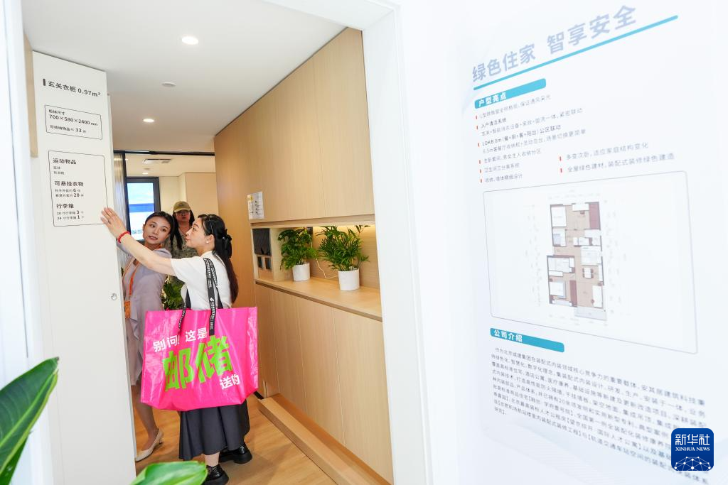 9月12日在服贸会工程咨询与建筑服务专题展区中建一局展位拍摄的北京门头沟沿河口村装配式绿色农宅模型。