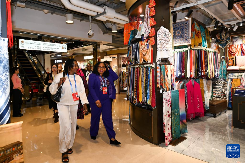 10月14日,全球妇女峰会参会嘉宾在北京市秀水街大厦参访。