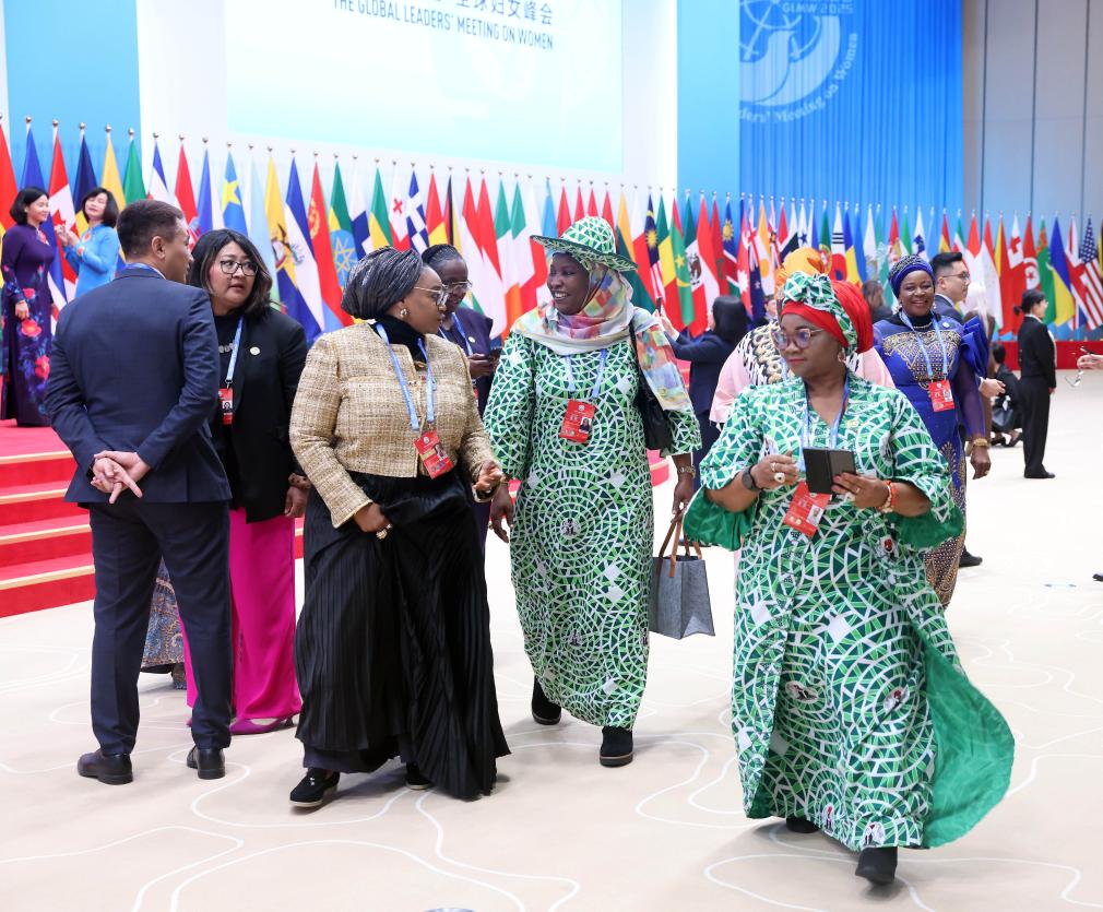 2025年10月13日,几位非洲代表来到全球妇女峰会开幕式会场。
