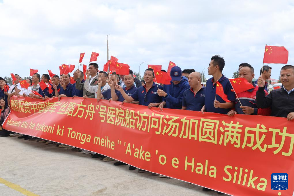 “丝路方舟”号医院船离开码头后与汤加海军举行了通信操演,随后双方舰艇鸣笛敬礼分航。
