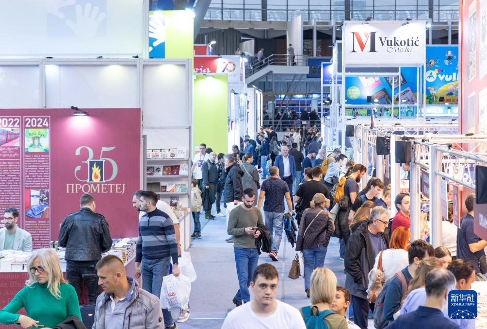 10月26日,在塞尔维亚首都贝尔格莱德,人们在贝尔格莱德国际书展上参观。新华社发(王韡摄)