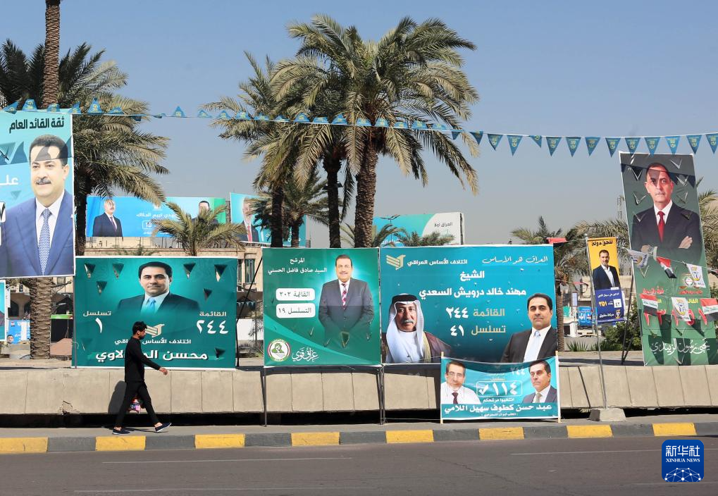 这是11月3日在伊拉克首都巴格达拍摄的国民议会选举海报。新华社发(哈利勒·达伍德摄)