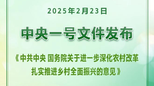 2025年中央一號文件發布 提出扎實推進鄉村全面振興